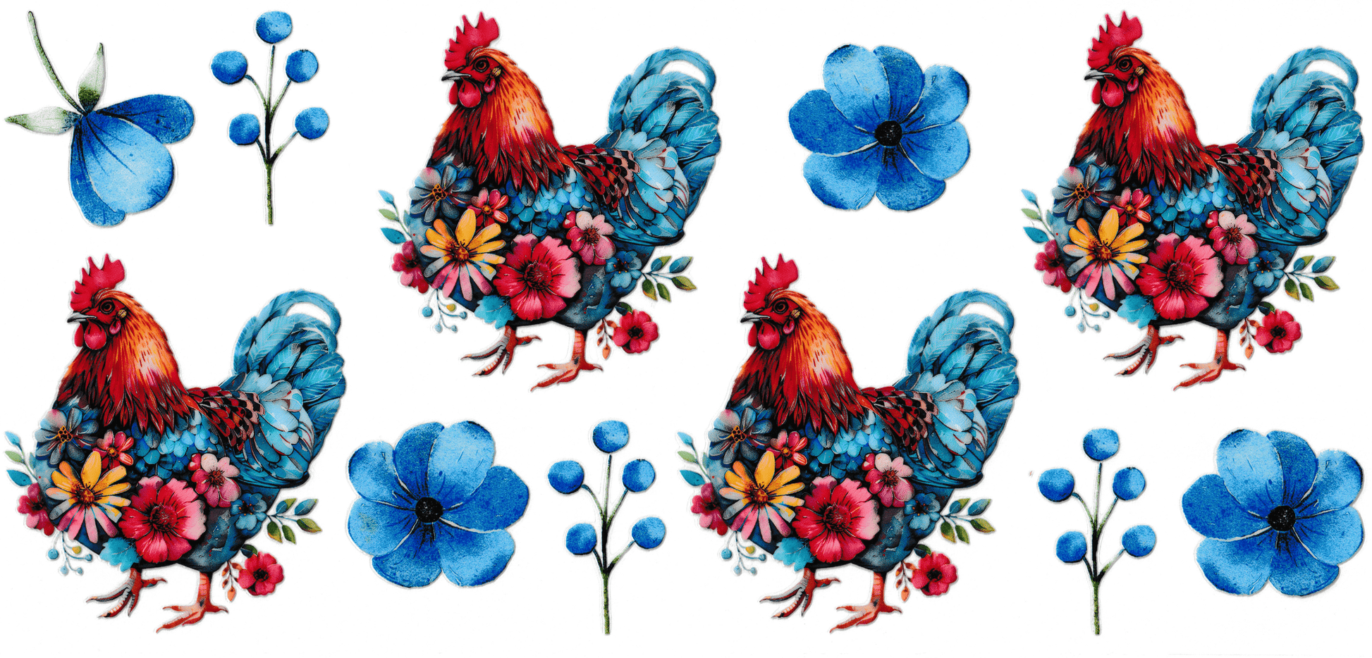 Blue Floral Roosters